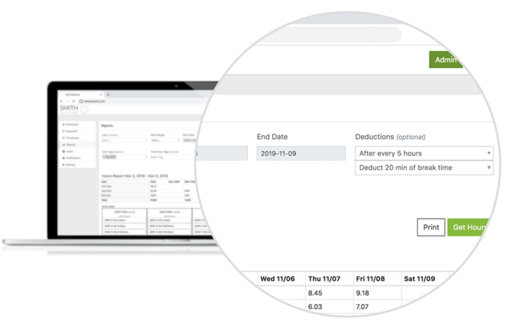 See the exact data you need by building custom reports using auto-deduct & tags to filter time entries.