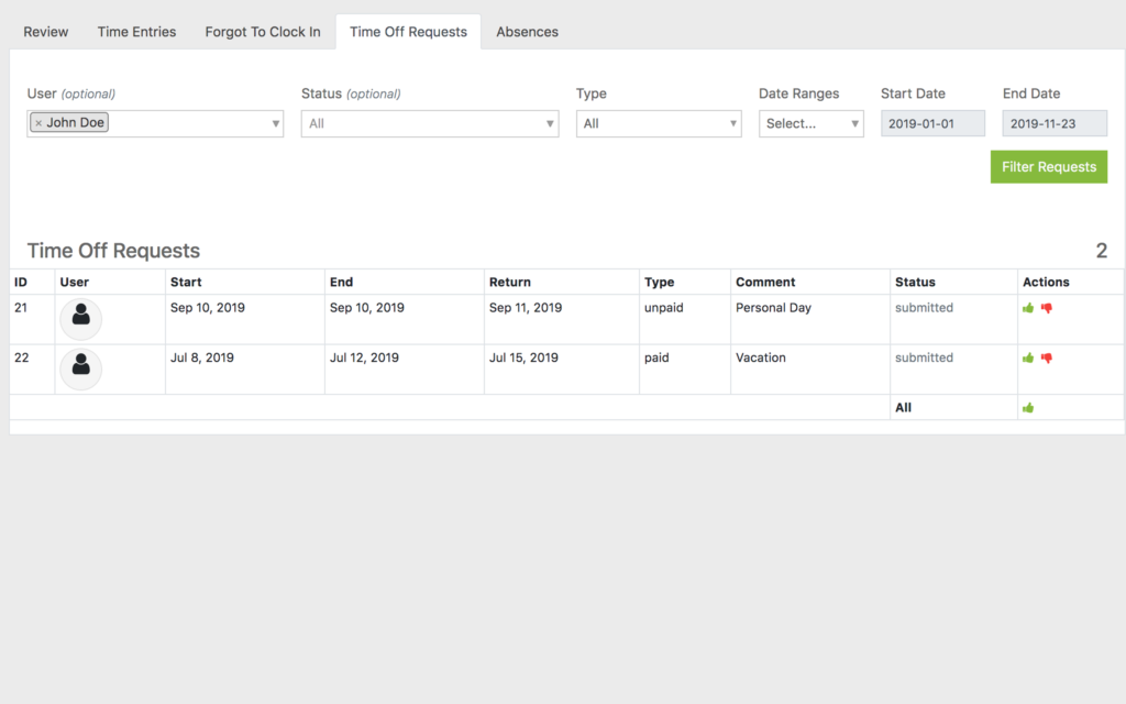When employees request paid/unpaid vacation time a manager will then be able to approve or deny the request.