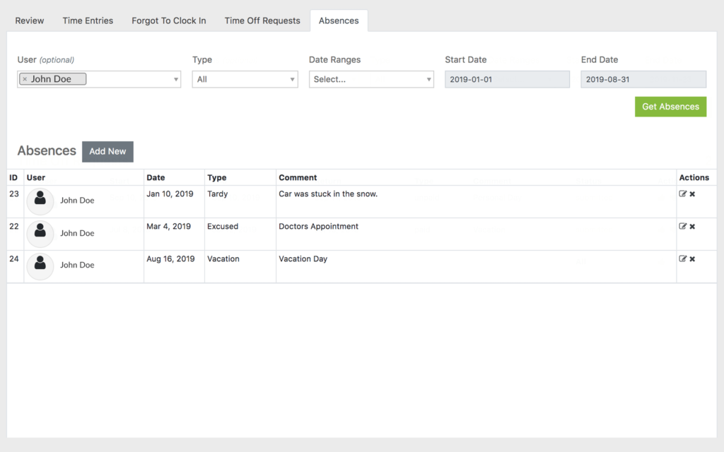 Keep track of days off employees have, run specific reports, filter to monitor employee attendance, & organize by date ranges.